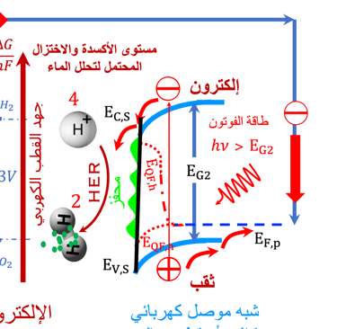 القطب السالب شبه موصل (نوع P) مصدر نصف التفاعل الكهروكيميائي الآخر لاختزال بروتونات الهيدروجين
